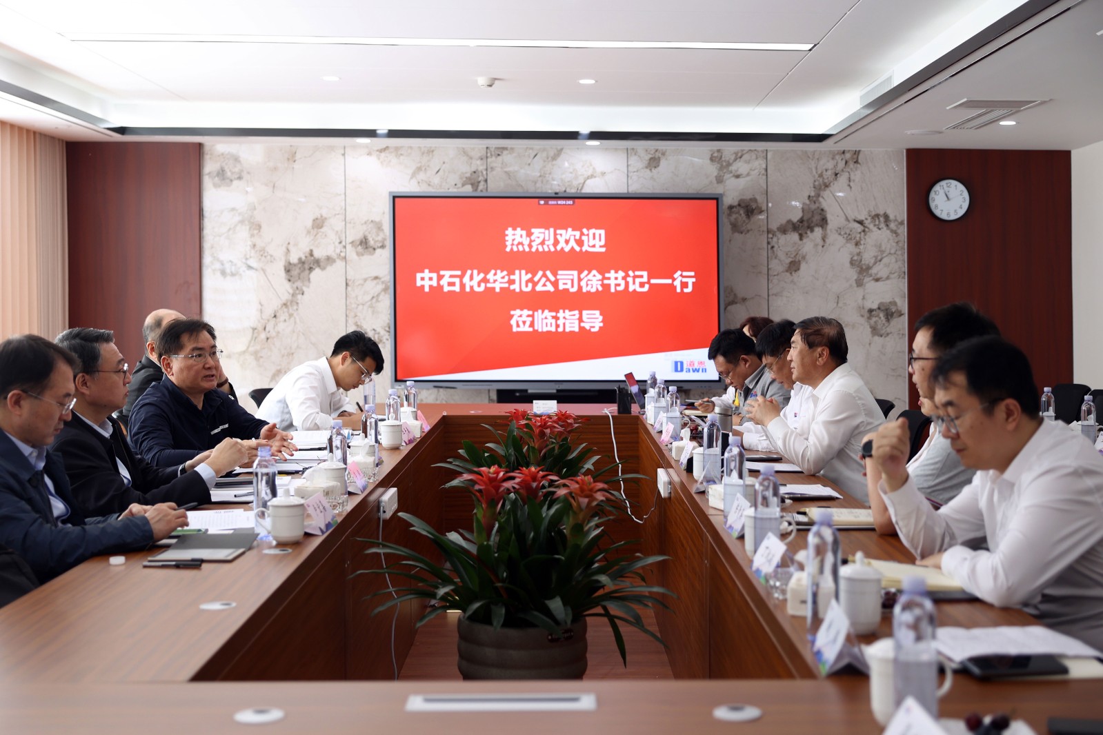 5月11日上午,,,,,,,中国石化化工销售有限公司华北分公司党委书记徐善明一行来PA旗舰厅·(中国)官方网站会见交流,,,,,,,旨在增进友谊、扩大共识、深化相助、同营生长。。。。。。。PA旗舰厅·(中国)官方网站董事长、总裁于晓宁,,,,,,,副总裁解云涛,,,,,,,PA旗舰厅·(中国)官方网站研究院院长陈青葵,,,,,,,PA旗舰厅·(中国)官方网站股份常务副总司理王泽方陪同运动。。。。。。。