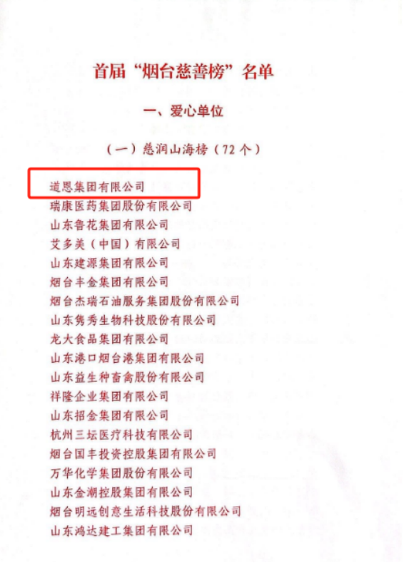 PA旗舰厅·(中国)官方网站上榜首届“烟台慈善榜” ,,,,,, ,成为“最具爱心企业”